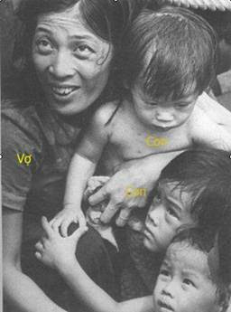 Hình bên trái: Thuyền nhân trên biển khơi. Do phóng viên báo chí Gerard Klijn theo tàu Cap Anamur, chụp hình gia đình tác giả (vợ và 2 con) vào cuối tháng 6 năm 1980 trong lúc tàu đang cứu vớt ghe vượt biển ở vùng tam giác Việt-Mã-Thái trên biển Đông. Người phụ nữ năm ấy 26 tuổi, đang bế 2 con không còn mảnh áo che thân vì áo quần ướt hết trong lúc vượt biển. Vào tháng 8 năm 1980, tấm hình nầy được phổ biến khắp mọi nơi công cộng tại Đức. Người phụ nữ hiện nay dạy nấu ăn Việt Nam ở các VHS (VolksHochSchule: Bình Dân Học Vụ), Familienbildung Stätte (Trung Tâm Giáo Dục Gia Đình), hoặc ở các Học viện Institute hay Academy thuộc lãnh vực Nữ Công Gia Chánh.